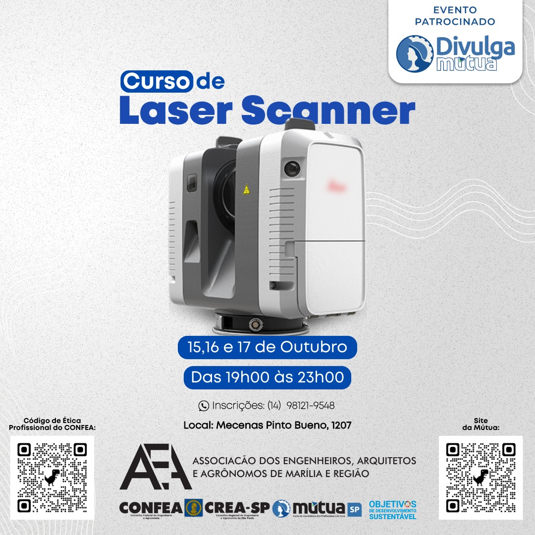 A AEA (Associação dos Engenheiros, Arquitetos e Agrônomos) de Marília organizada nos dias 15, 16 e 17 de outubro de 2024, o curso de utilização de laser scanner nos serviços de engenharia e na elaboração de tour virtual, recurso que vem sendo muito utilizado na construção civil. O treinamento será ministrado pelo engenheiro agrônomo Rafael Matsuoka, que tem pós-graduação em georreferenciamento de imóveis rurais, e acontecerá no período das 19h às 23 horas. A iniciativa tem apoio da Mútua São Paulo e do Conselho Regional de Engenharia e Agronomia do Estado de São Paulo (Crea SP) e transmitirá técnicas avançadas de escaneamento e processo de digitalização tridimensional.