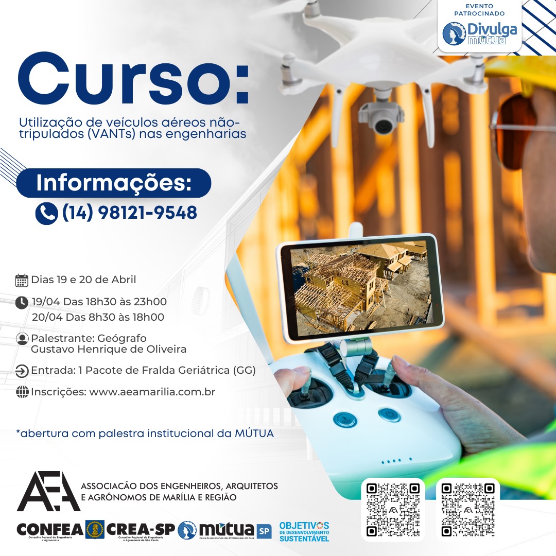 Curso da AEA Marília vai ensinar a utilização de drones nas atividades de Engenharia