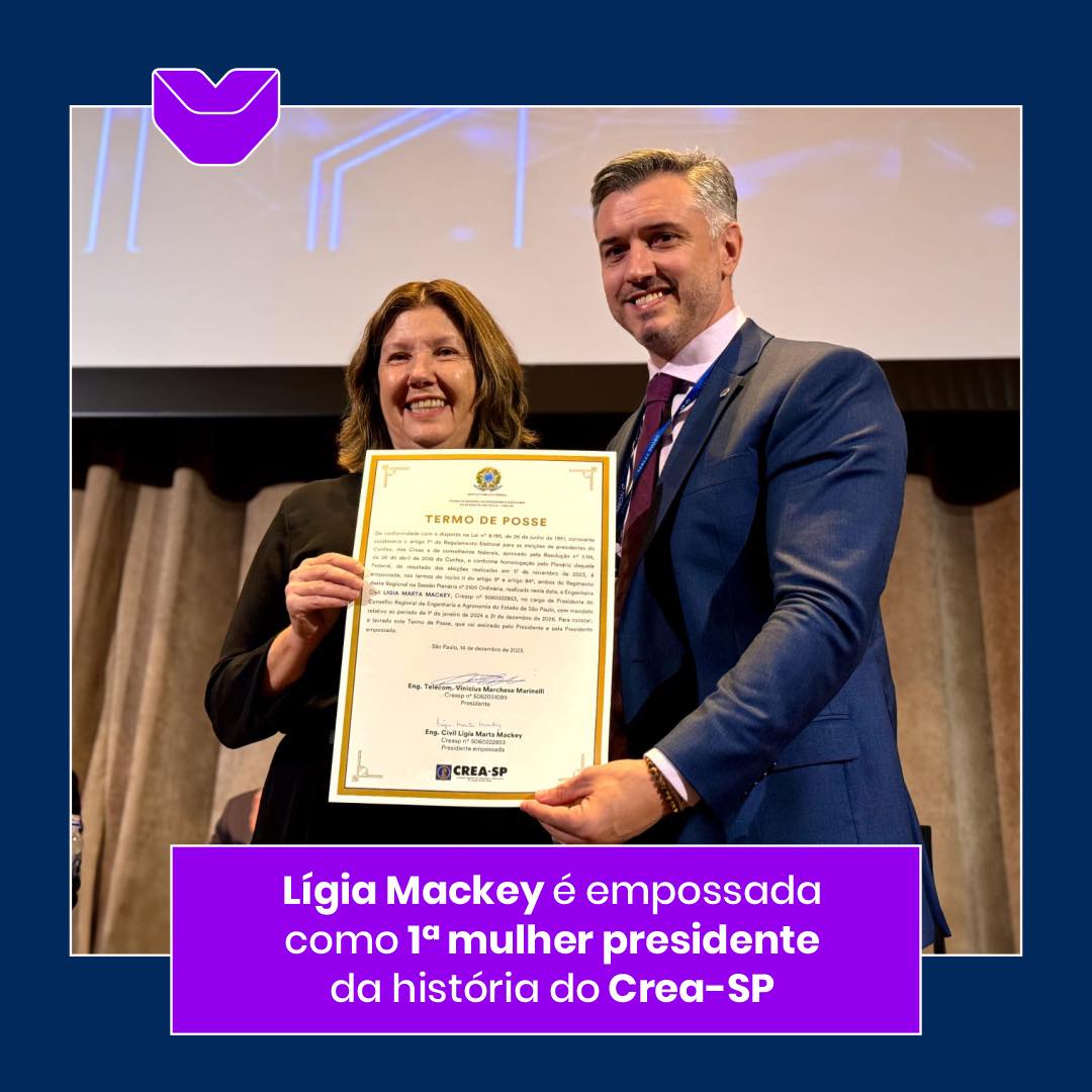 A engenheira civil Lígia Marta Mackey assumiu em 1º de janeiro de 2024 a presidência do Conselho Regional de Engenharia e Agronomia do Estado de São Paulo, o Crea São Paulo. A autarquia completa em 2024 90 anos de história e pela primeira vez uma mulher assume o comando da instituição. A eng...