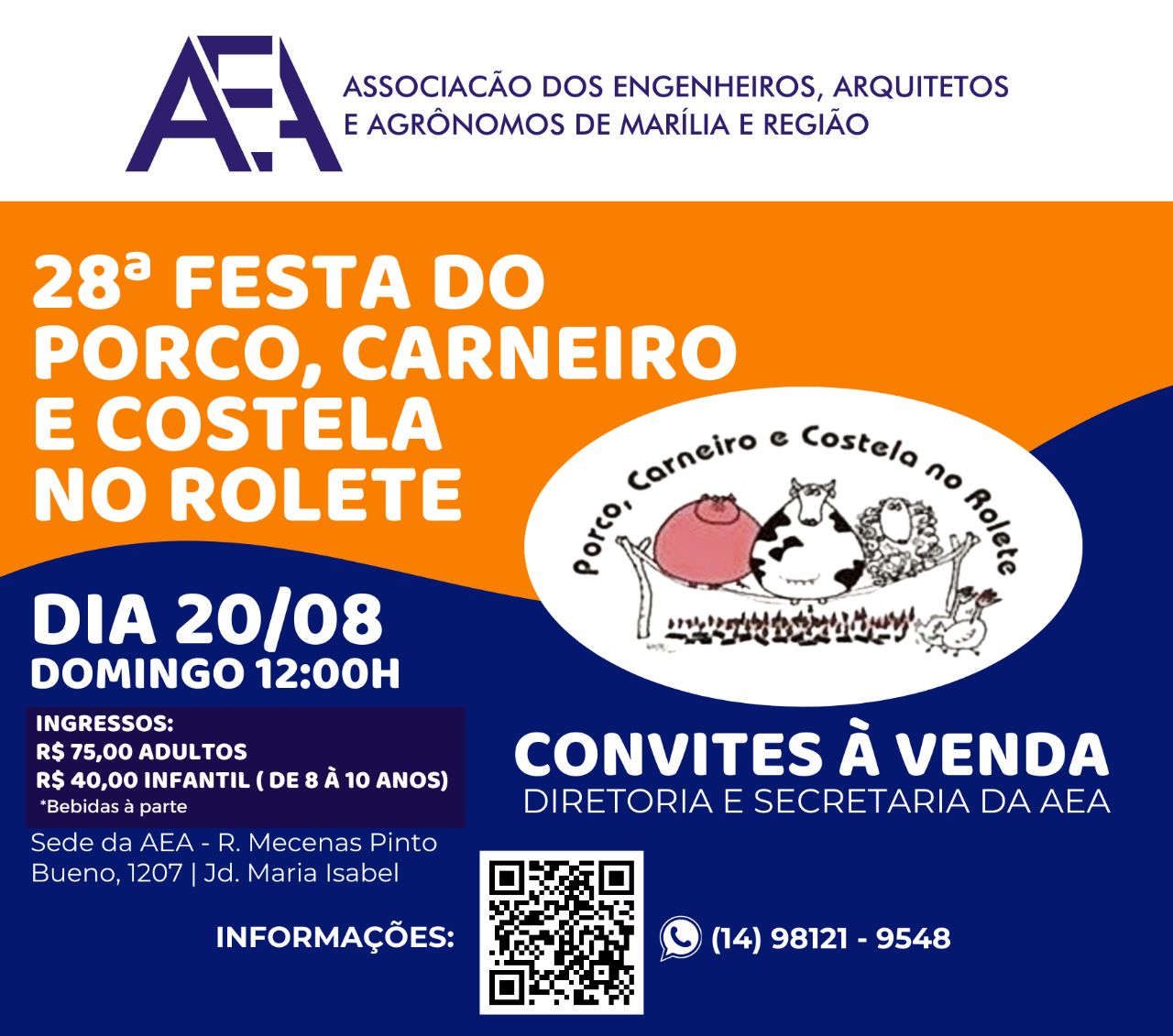 Diretores estarão na sede da AEA, rua Mecenas Pinto Bueno, nº 1207, das 8h às 17 horas para atender os interessados[por Agência Patmus Editorial]Quem desejar participar da 28ª edição do tradicional almoço Festa do Porco, Carneiro e Costela no Rolete da Associação dos Engenheiros, Arquiteto...
