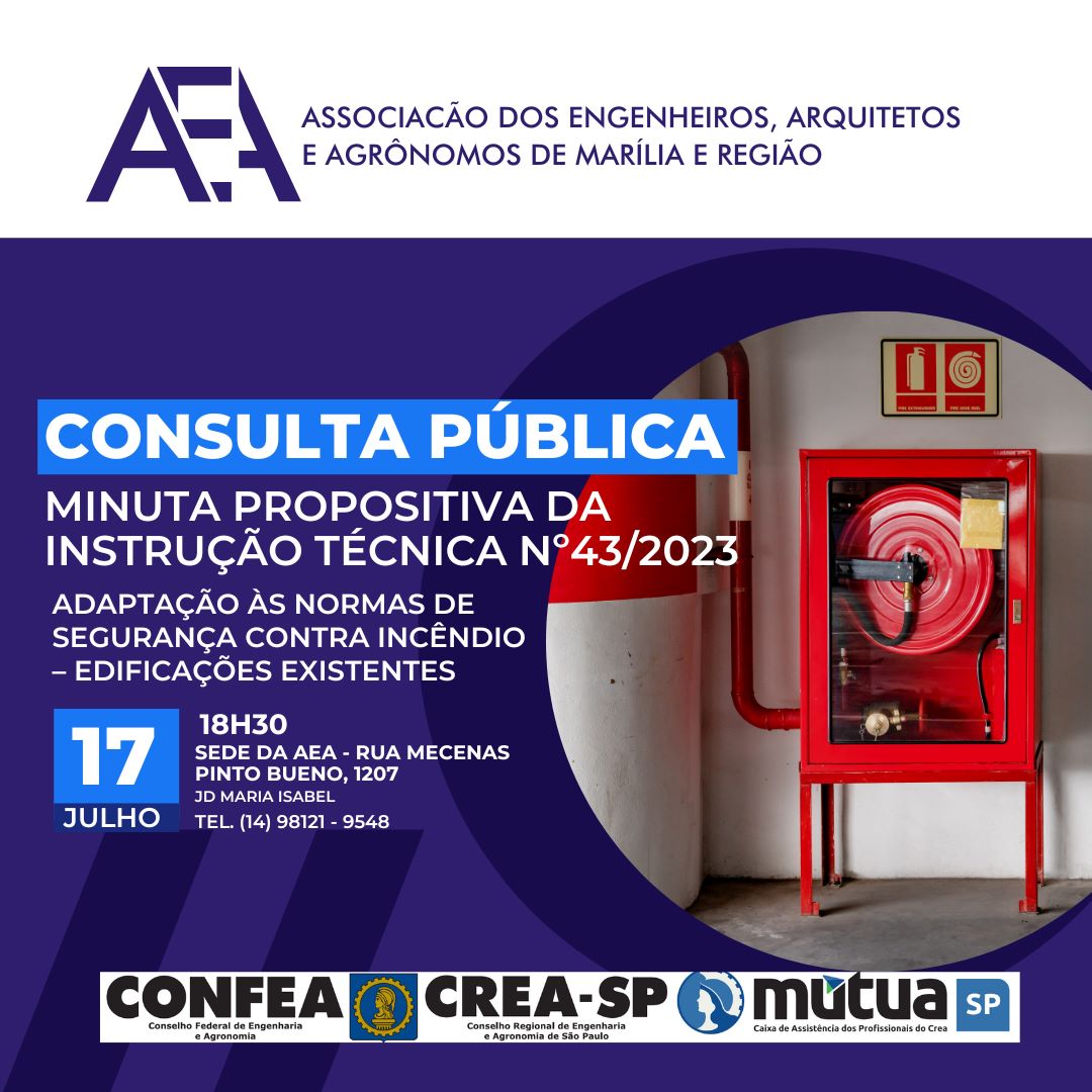 AEA Marília realiza consulta pública na próxima segunda, 17 de julho, para minuta propositiva de normas de segurança contra incêndio