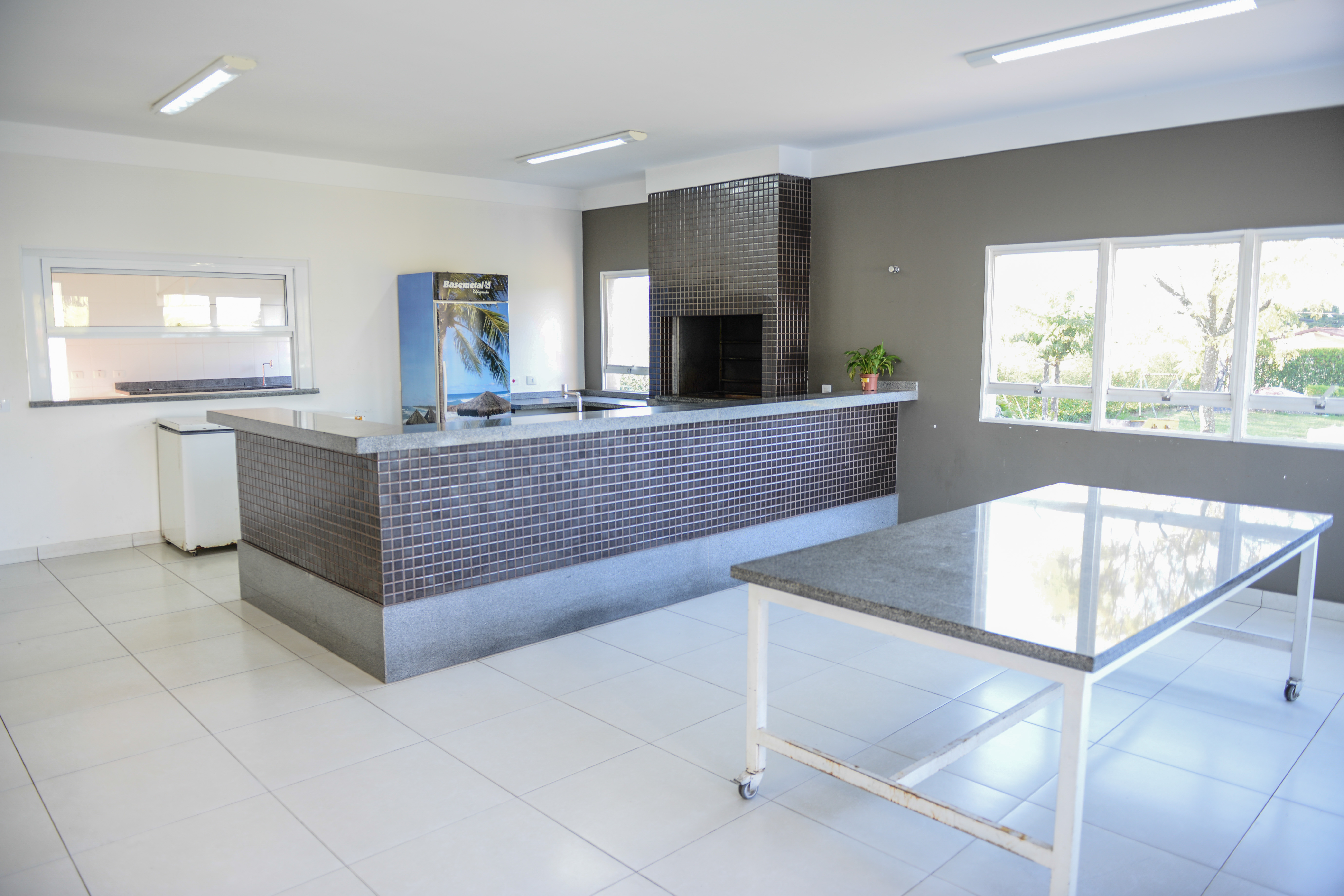 – Quiosque para 50 pessoas, equipado com churrasqueira, forno de pizza, freezer e Wcs.