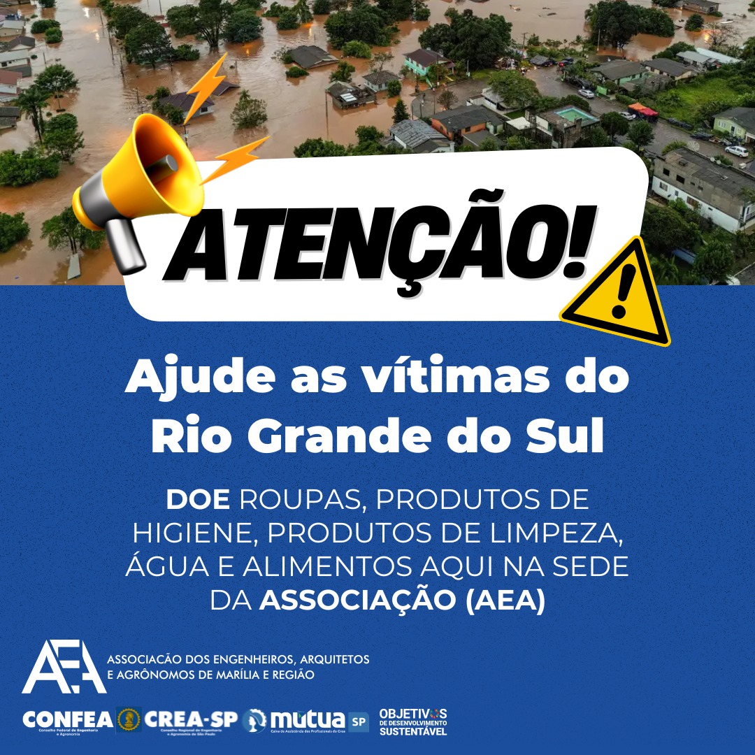 AEA Marília se mobiliza para ajudar vítimas desabrigadas do Rio Grande do Sul com campanha para arrecadar alimentos, roupas, água mineral e produtos de limpeza e higiene pessoal