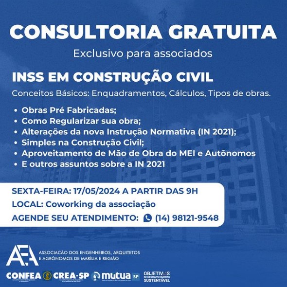 Associados da AEA Marília terão consultoria gratuita sobre INSS na construção civil