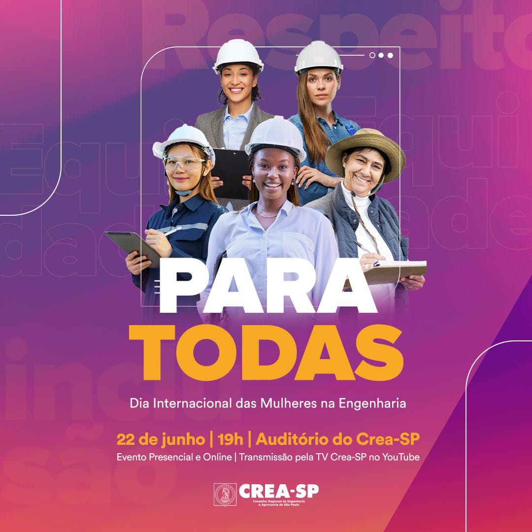 Crea São Paulo realiza Dia Internacional das Mulheres na Engenharia 5ª-feira, 22 de junho