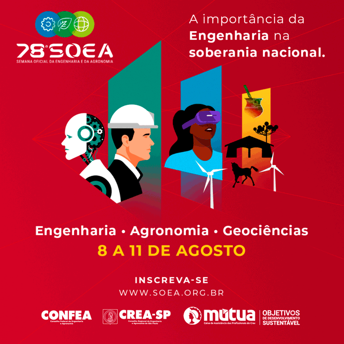 Evento busca contribuição para o desenvolvimento nacionalA 78° edição da Semana Oficial da Engenharia e da Agronomia (Soea) acontecerá entre os dias 8 e 11 de agosto em Gramado, no Rio Grande do Sul. O evento, que é o maior da área tecnológica no Brasil, tem como tema este ano a “Importâ...