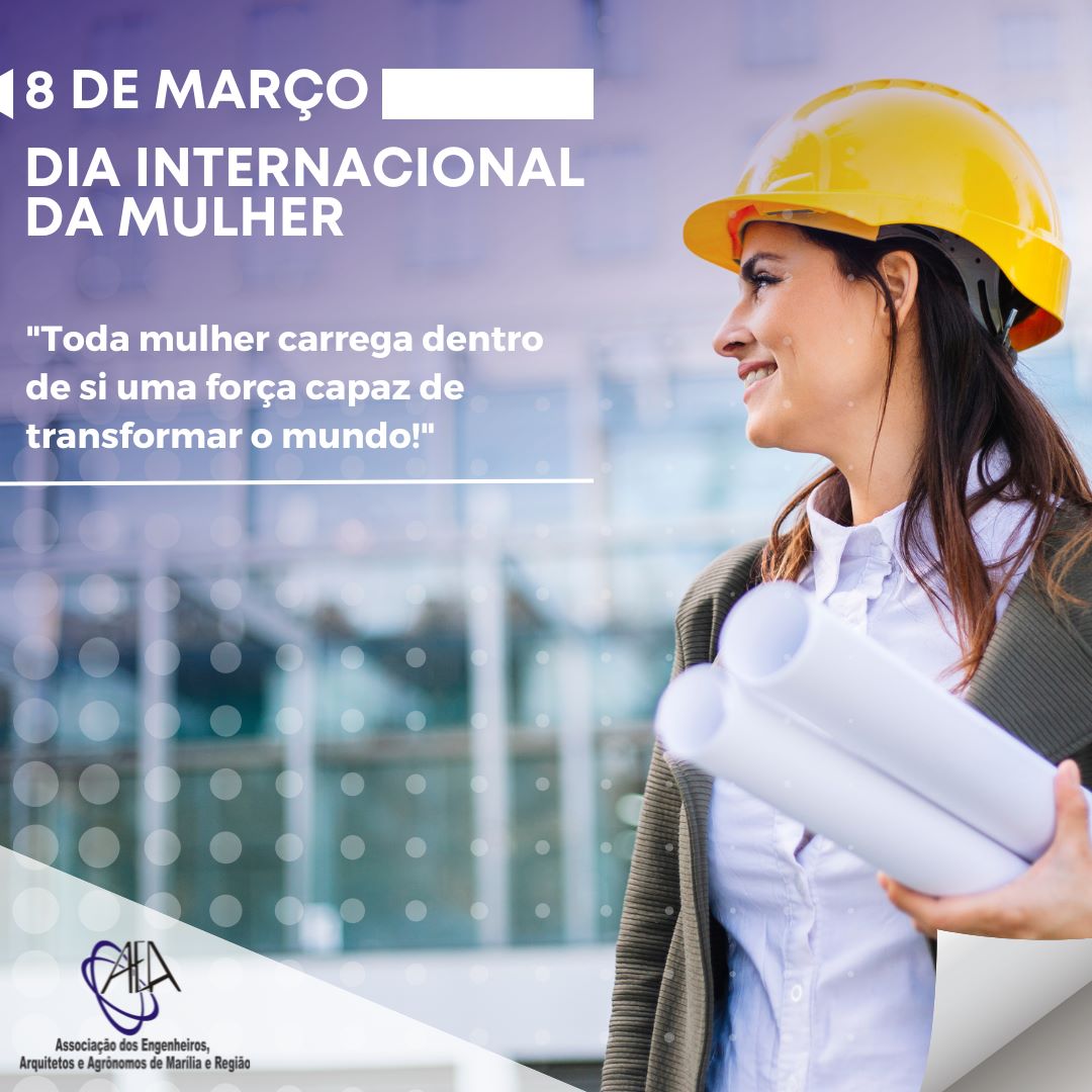 A todas as mulheres guerreiras, que lutam por seus sonhos e não desistem diante das dificuldades, um feliz Dia Internacional da MulherUma homenagem da Associação dos Engenheiros, Arquitetos e Agrônomos de Marília ...