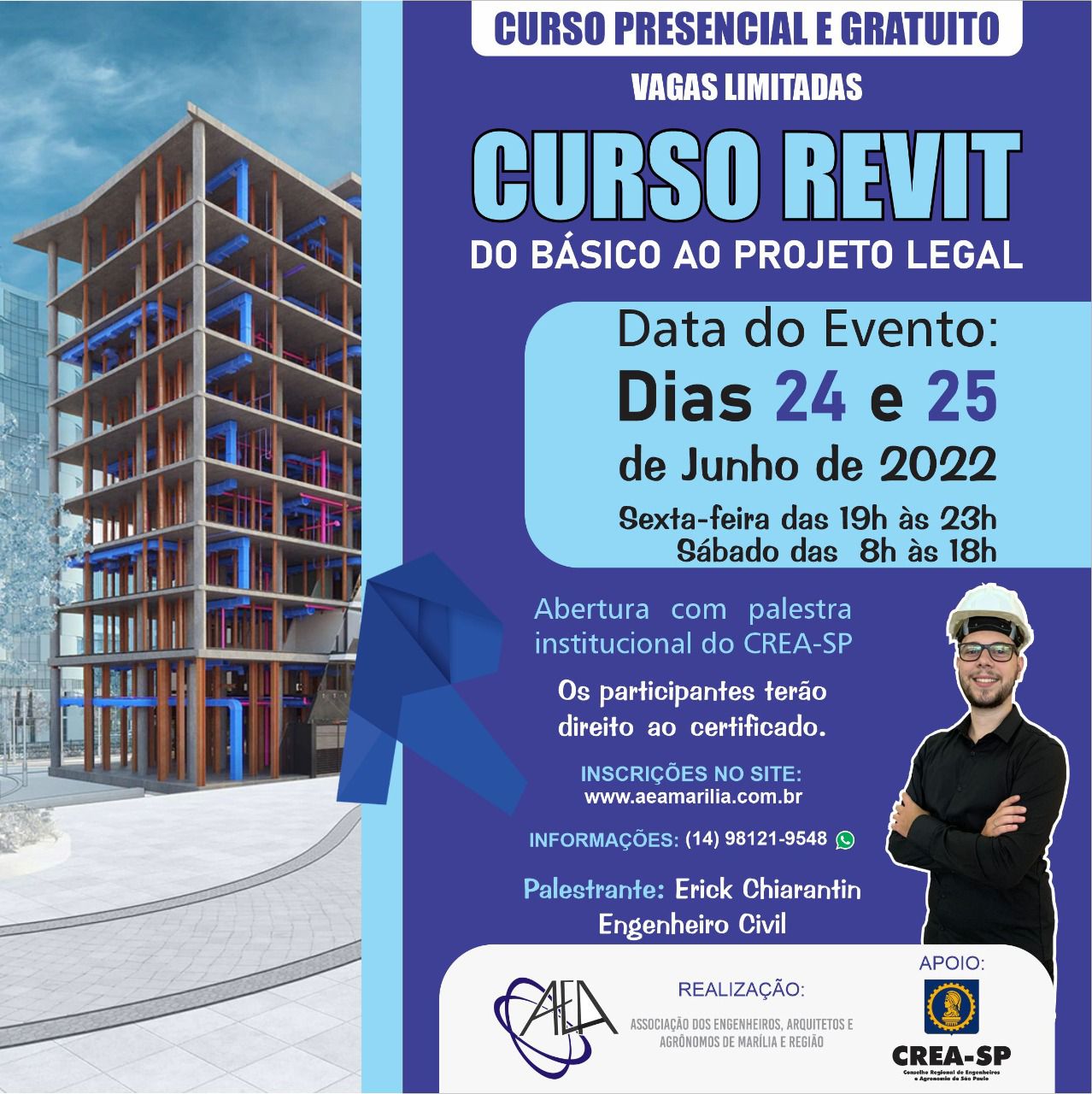 A Associação dos Engenheiros, Arquitetos e Agrônomos de Marília (AEA Marília), com o apoio do Conselho Regional de Engenharia e Agronomia, Crea São Paulo (Crea SP), ministrarão em dois dias curso completo sobre o avançado software Revit. O treinamento, gratuito, será realizado na sede da AE...