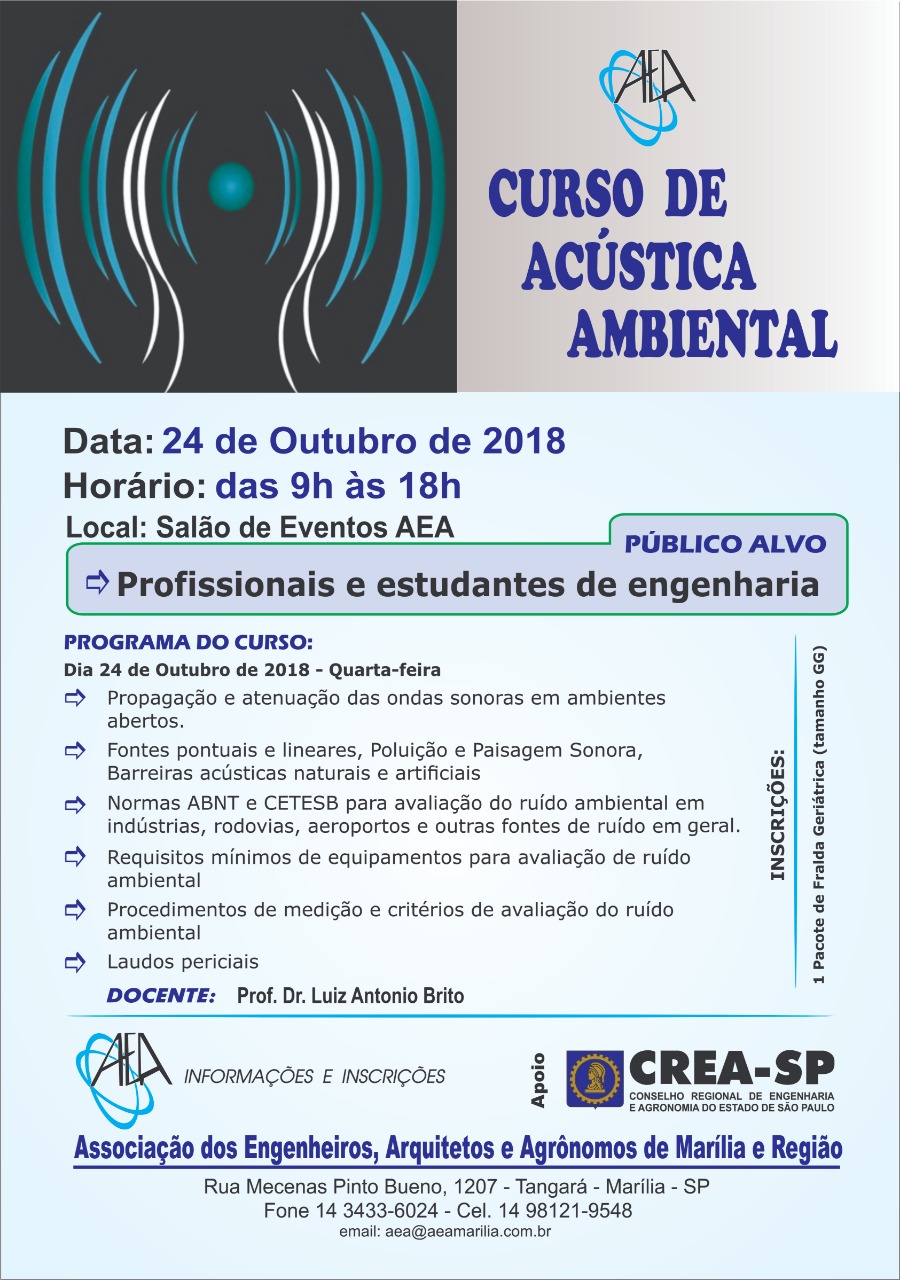 CURSO ONLINE - AVALIAÇÃO E PERÍCIA DE RUÍDO E VIBRAÇÃO AMBIENTAL - DIAS 19, 20 E 21 de Outubro
